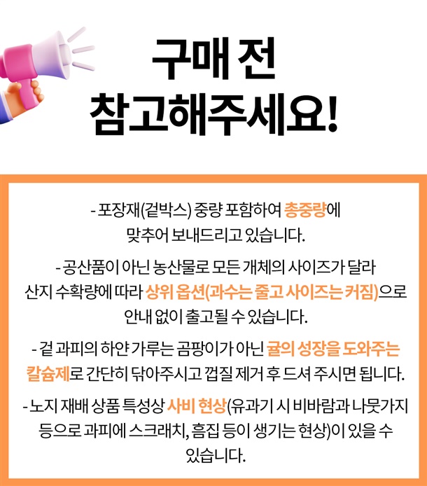 · 신선식품 특성상 상품 하자 및 파손에 따른 교환/반품의 경우 반드시 사진 확인이 필요합니다.