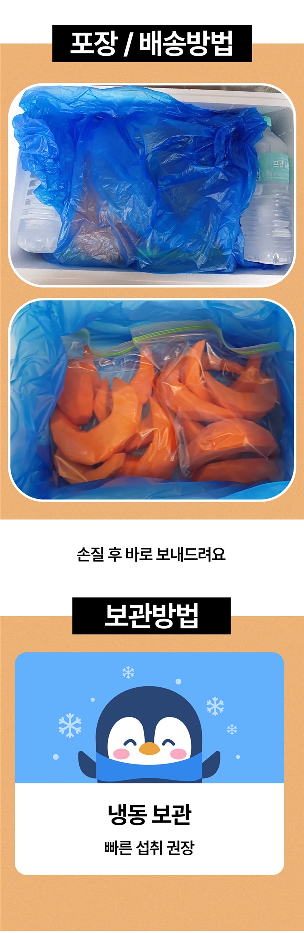 · 냉동제품이 녹아 도착하더라도 걱정 마세요.