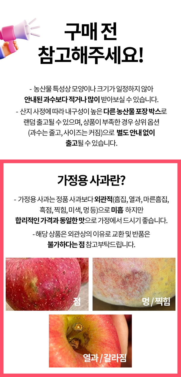 · 신선식품 특성상 단순변심 또는 상품의 가치가 현저히 감소할 경우, 교환/반품이 불가합니다 .