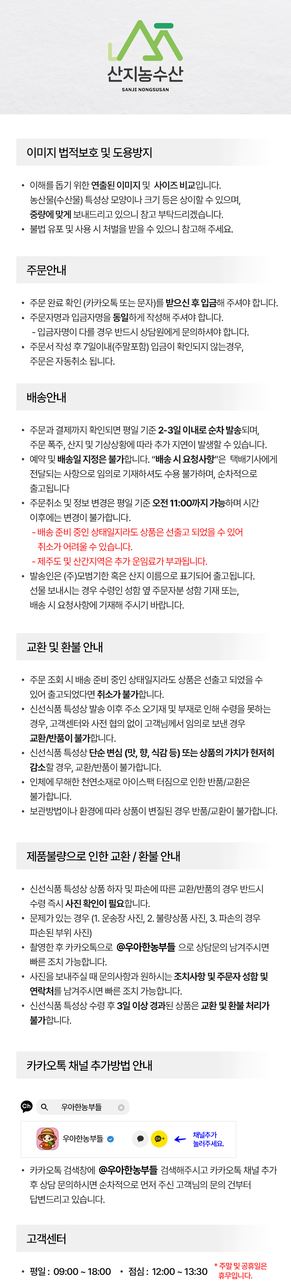 · 주문내역 변경, 취소문의 는 카카오톡 @산지농수산보령 으로 문의 주시면 됩니다.