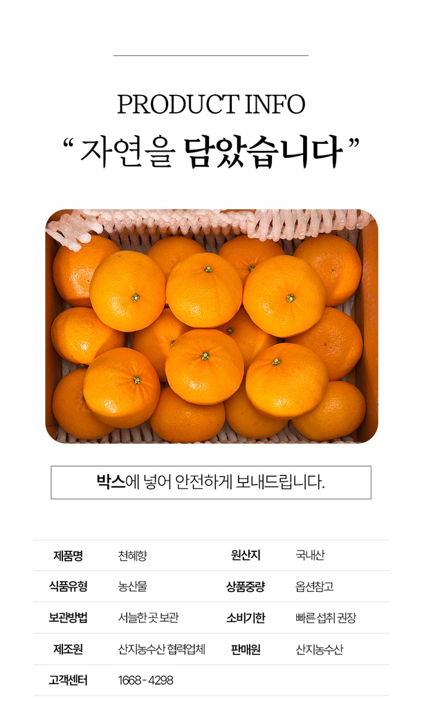 · 발송인은 (주)모범기한 또는 산지 업체명으로 표기되어 출고됩니다.