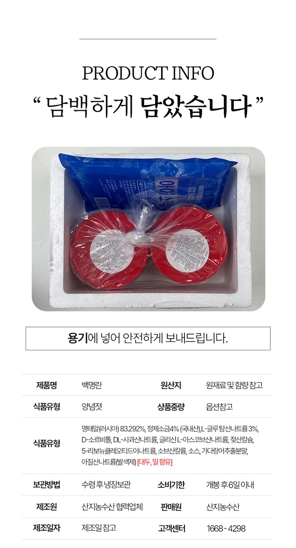 [1+1] 무색소 저염 A급 파지 백명란