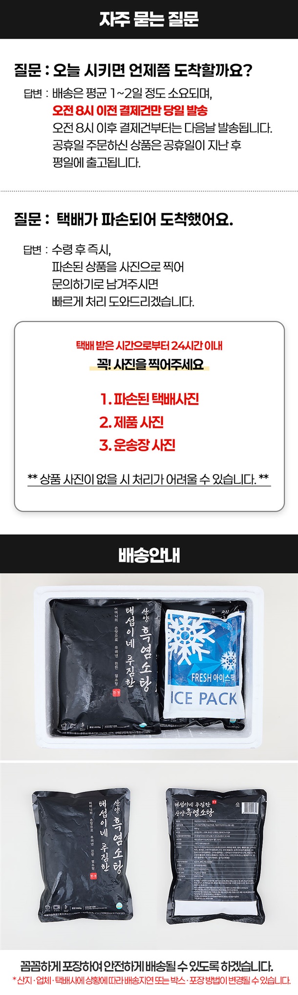 · 냉동제품이 녹아 도착하더라도 걱정 마세요.