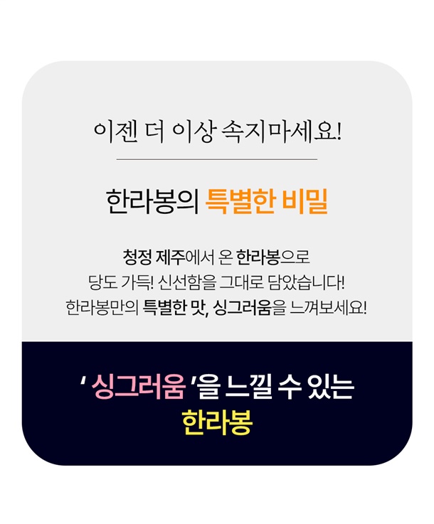· 신선식품 특성상 단순변심 또는 상품의 가치가 현저히 감소할 경우, 교환/반품이 불가합니다 .